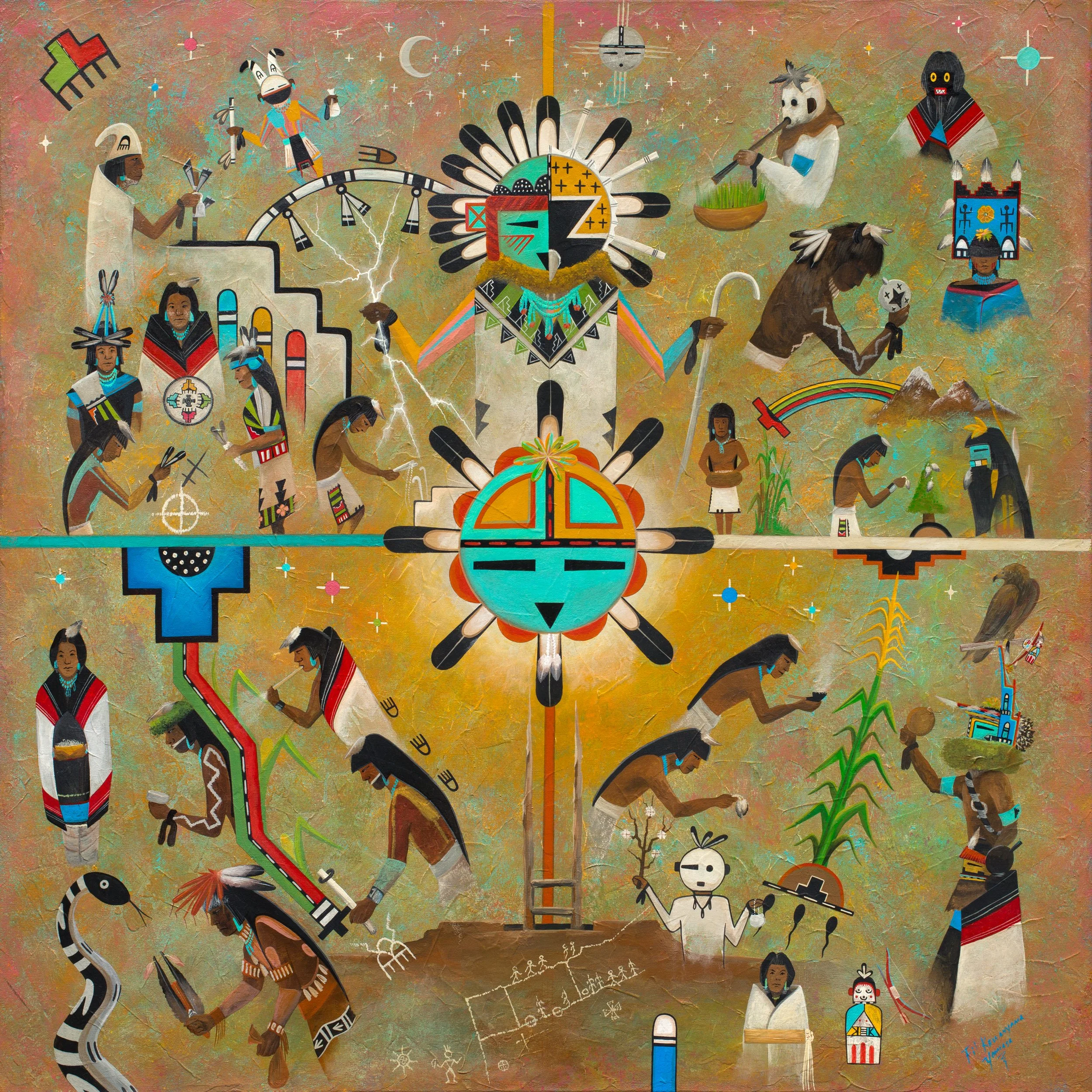 “My paintings about Hopi ceremonial life are my way of bringing awareness to who we are in today’s world, trying to live the way that our ancestors wanted us to live ceremonially, but at the same time balancing it out by having jobs, and going to work and school,” he said.