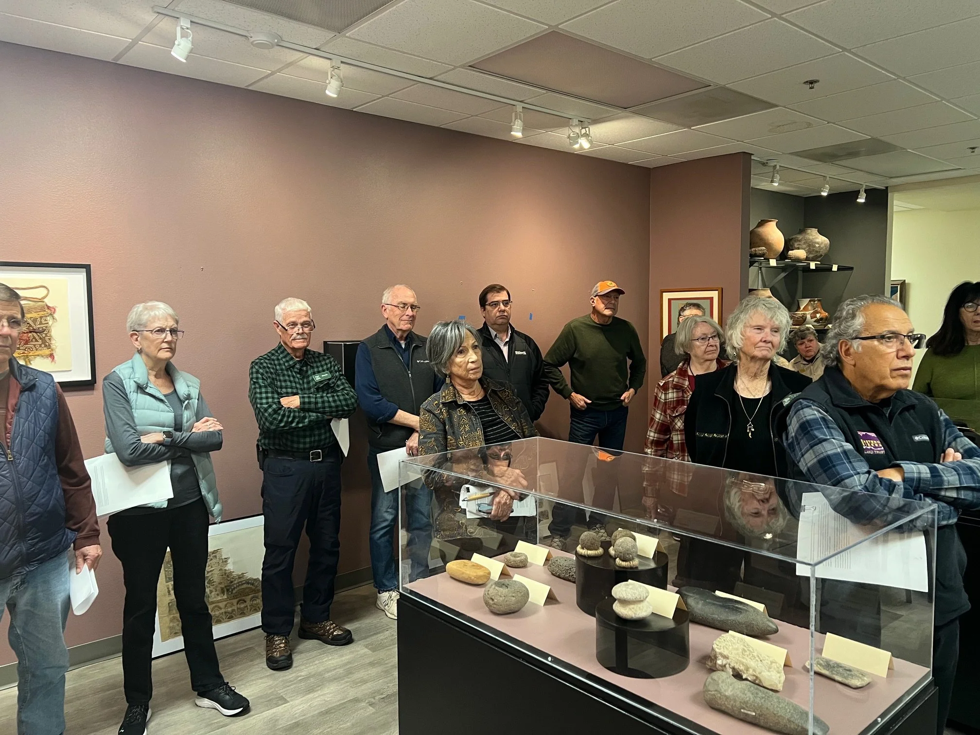 Margaret Hangan, Director of Collections, was instrumental in co-developing the exhibit. Jerry Morris, Volunteer Facility Manager and Exhibit Preparator, helped with all aspects of exhibit installation. Lab Volunteers Keith and Jeannie Greiner curated the groundstone and pottery display. Betty Goodwin, Volunteer Docent, formatted and printed the exhibit text. Alyssa Smith, Journalist and Social Media Manager, wrote the exhibit narratives, taking into consideration how each piece would resonate with a visitor while weaving together a story.