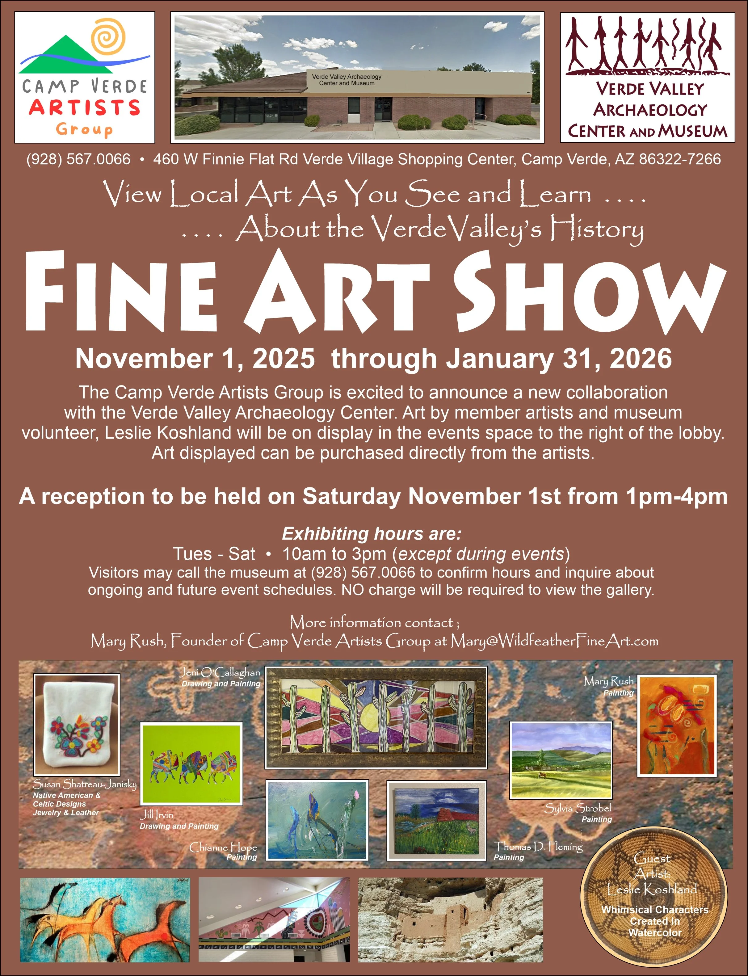 Rush stated, “The affiliation with the Verde Valley Archaeology Center and Museum is among our most exciting news yet. The museum is a beautiful local cultural center that sets high standards, from its historical displays to the knowledgeable staff. Taking a tour of the museum is a treat. Now museum visitors can view local art as they learn about local archaeology.”